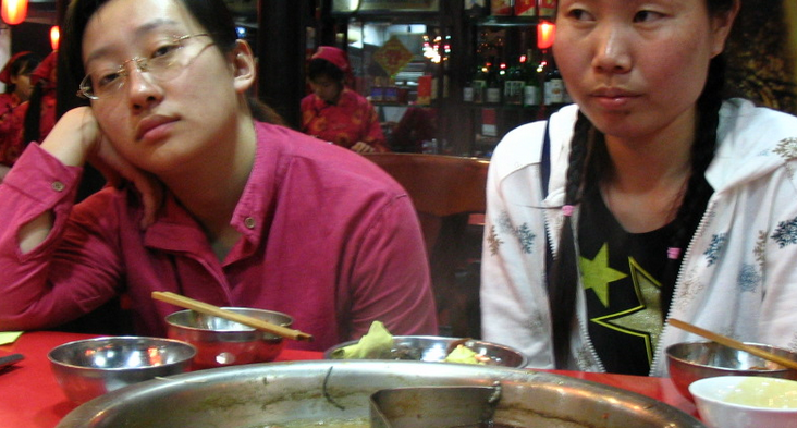 回忆的画面- 速食餐厅里桌面上摆着一大堆薯条,两大杯可乐,两个汉堡,还有两盒烤翅,林欣欣一个人欢快的吃着。这时林欣欣发现对面坐着一